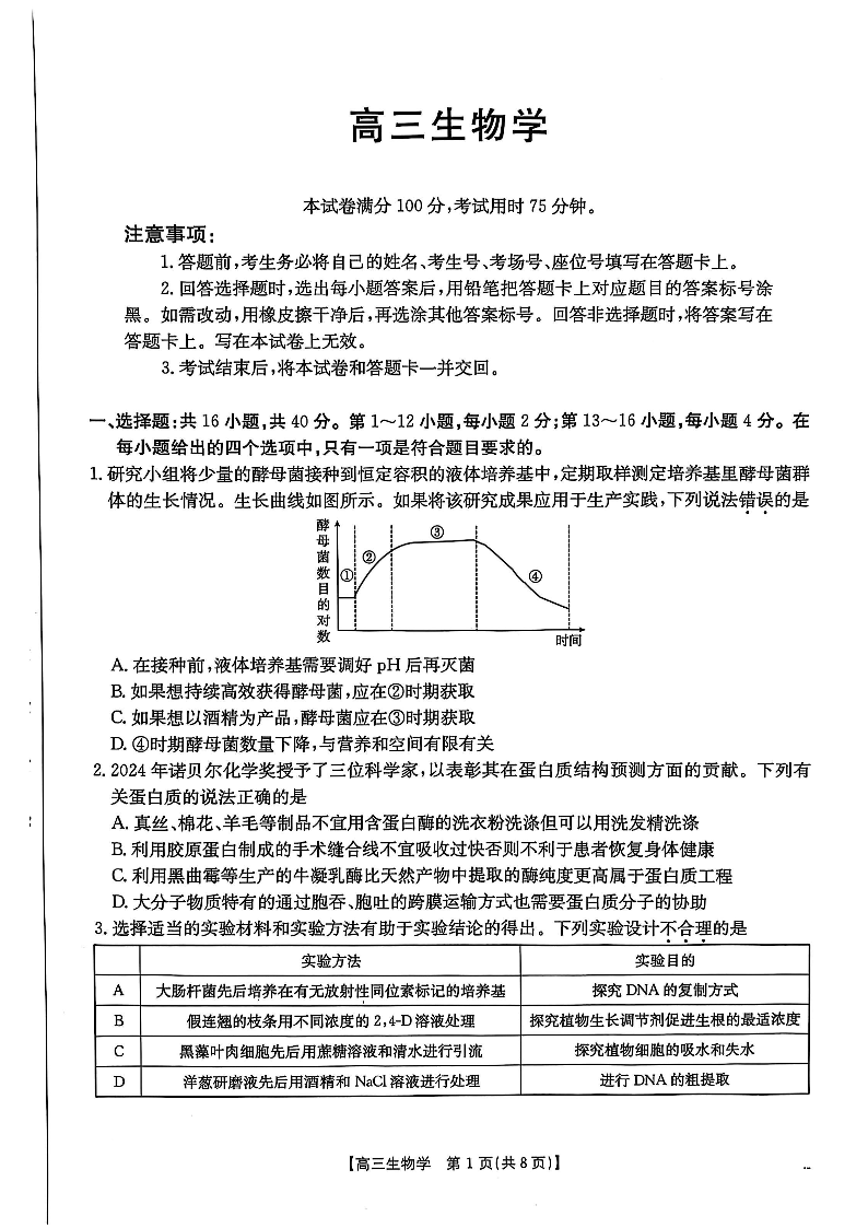 广东省深圳市2024-2025学年上学期1月高三期末考试生物