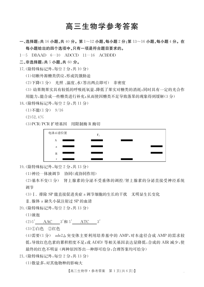 广东省深圳市2024-2025学年上学期1月高三期末考试生物答案