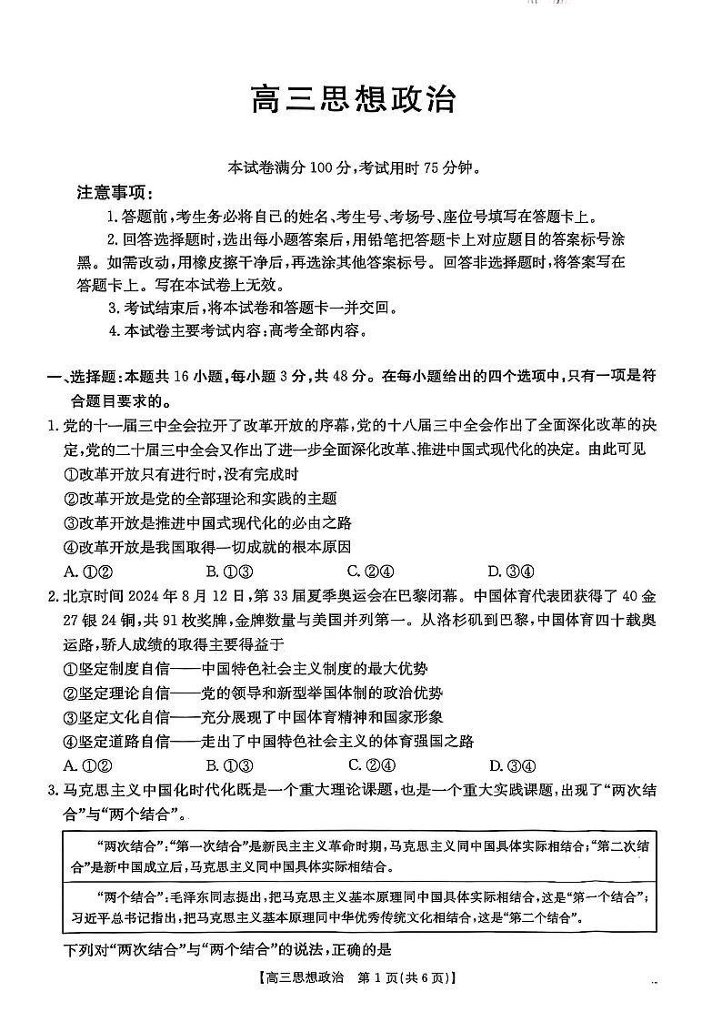 广东省深圳市2024-2025学年上学期1月高三期末考试政治
