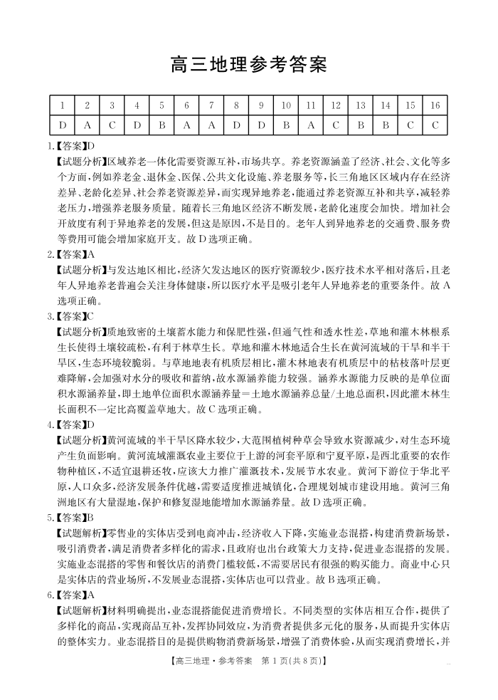 广东省深圳市2024-2025学年上学期1月高三期末考试地理答案