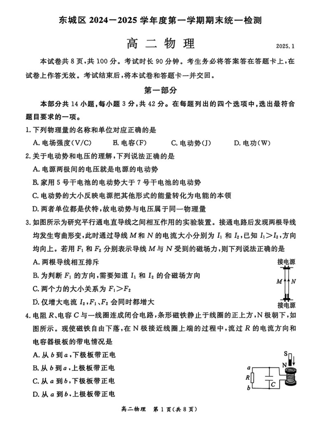 北京市东城区2024-2025学年上学期高二期末考试物理