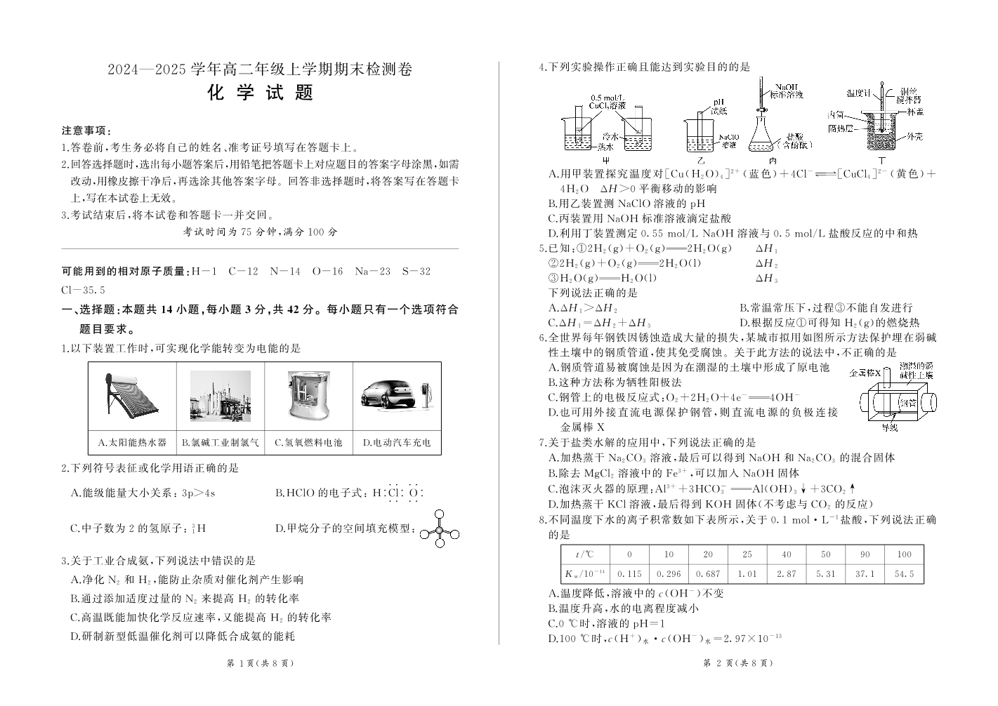 湖南省区域高中2024-2025学年上学期1月高二期末考试化学+答案