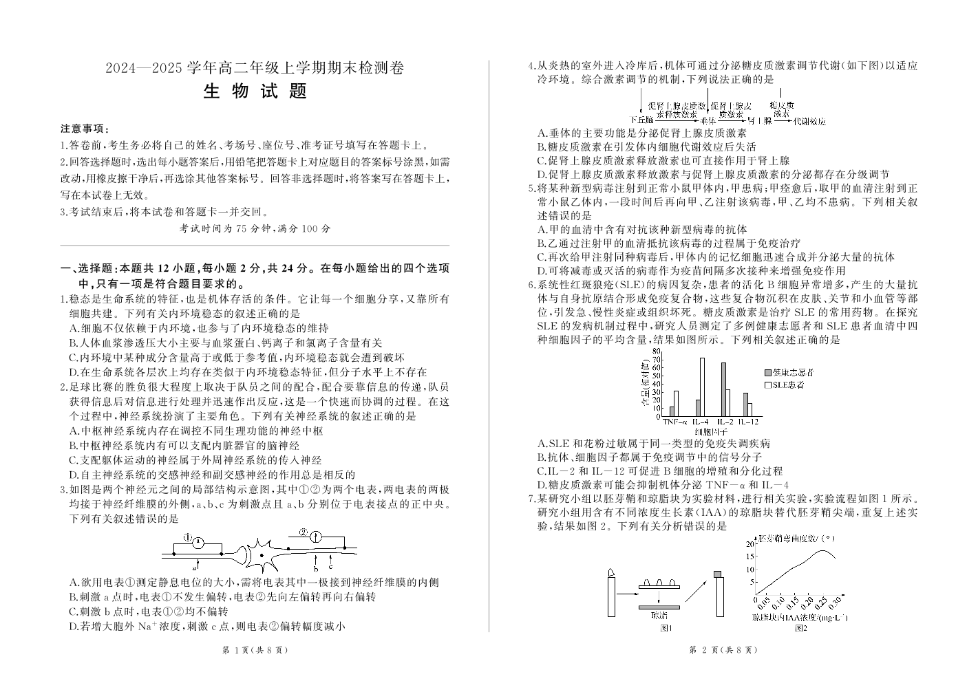 湖南省区域高中2024-2025学年上学期1月高二期末考试生物+答案