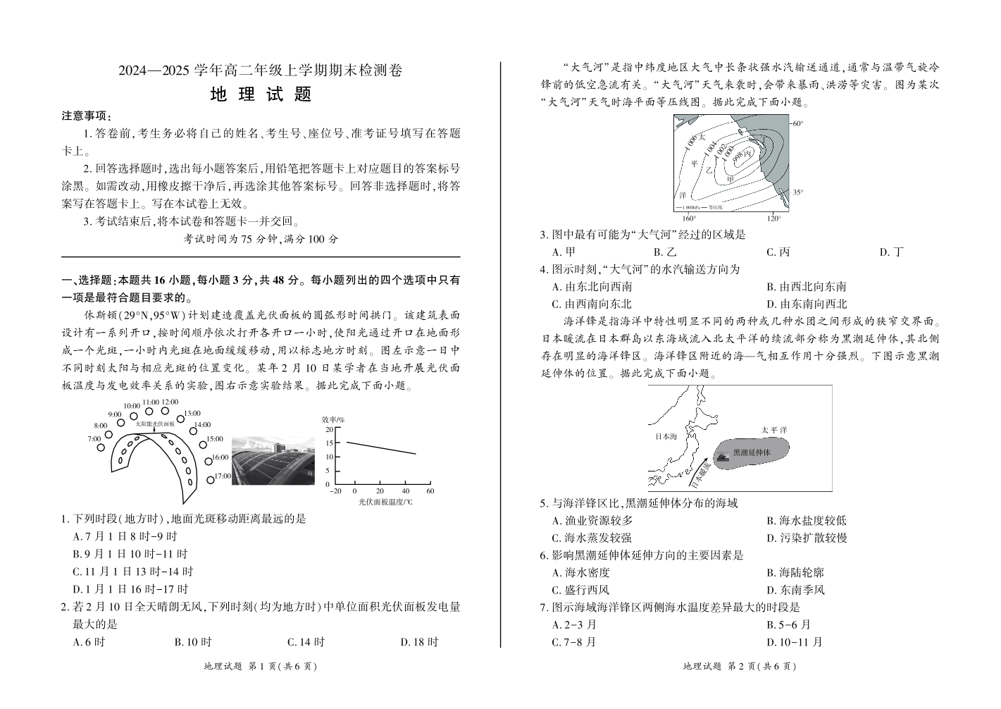湖南省区域高中2024-2025学年上学期1月高二期末考试地理+答案