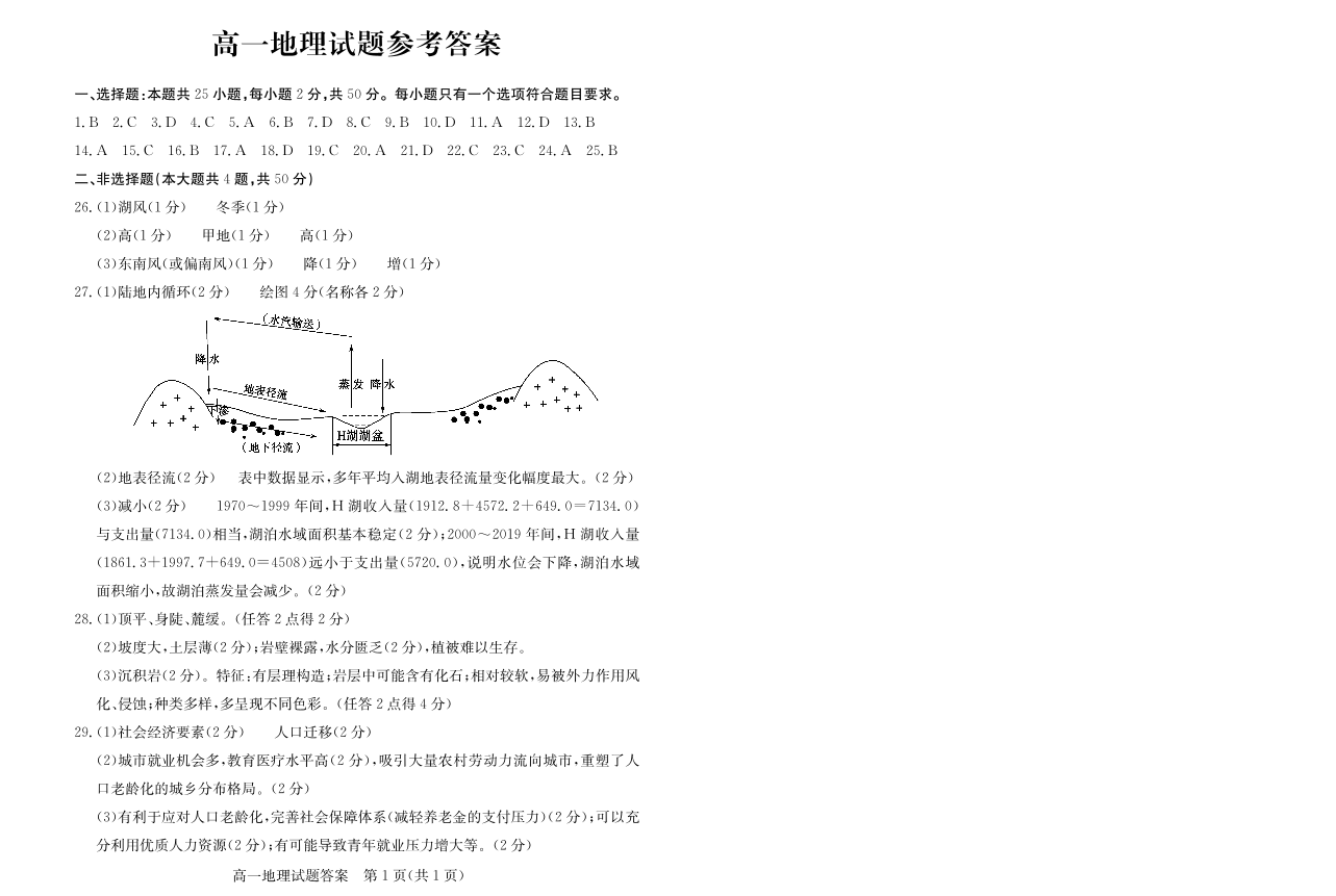 山东省德州市2024-2025学年上学期1月高一期末考试地理答案
