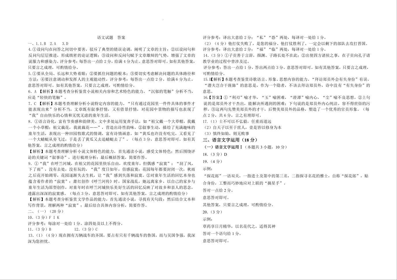 河南省开封市龙亭区2024-2025学年河南大学附属中学高二年级10月月考语文答案