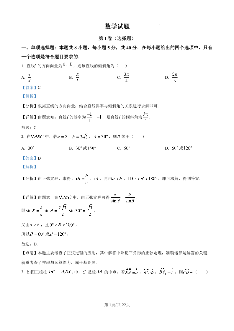 河南省开封市龙亭区2024-2025学年河南大学附属中学高二年级10月月考数学(解析版)