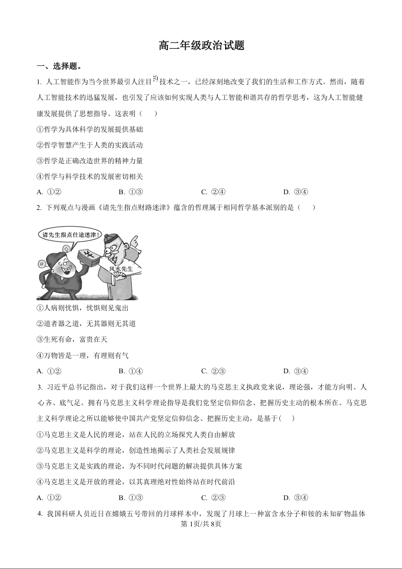 河南省开封市龙亭区2024-2025学年河南大学附属中学高二年级10月月考政治(原卷版)
