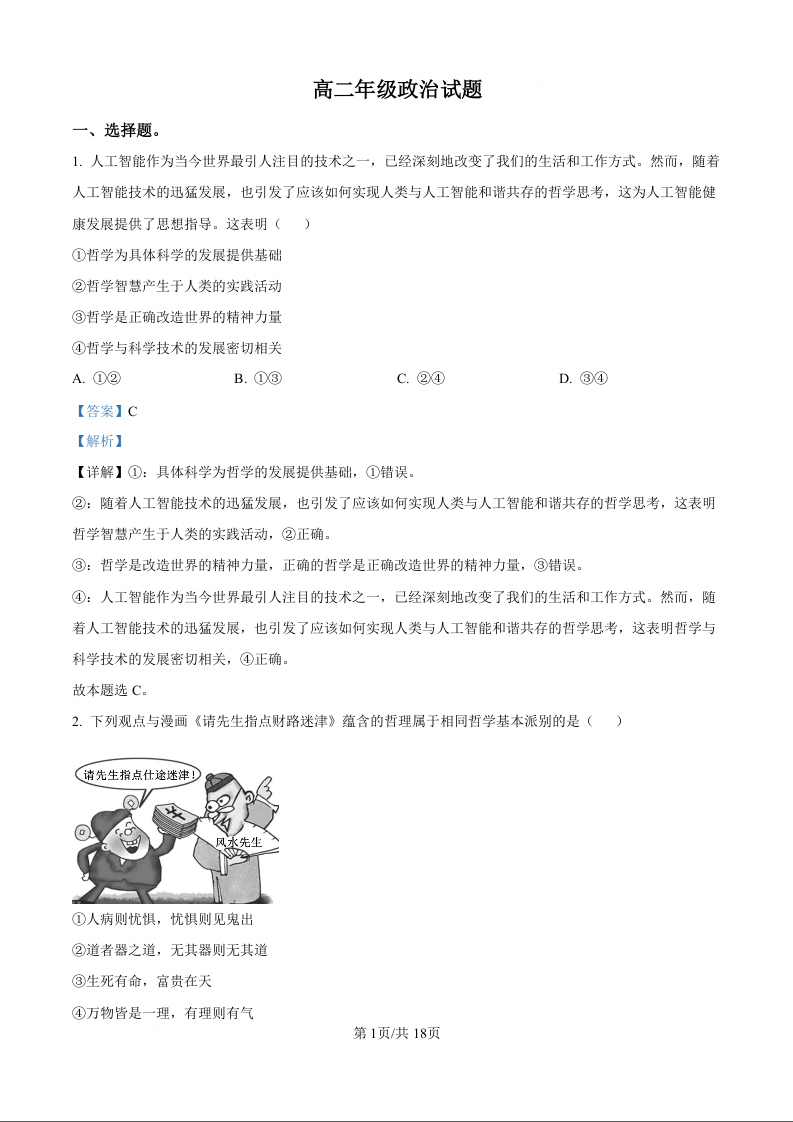 河南省开封市龙亭区2024-2025学年河南大学附属中学高二年级10月月考政治(解析版)