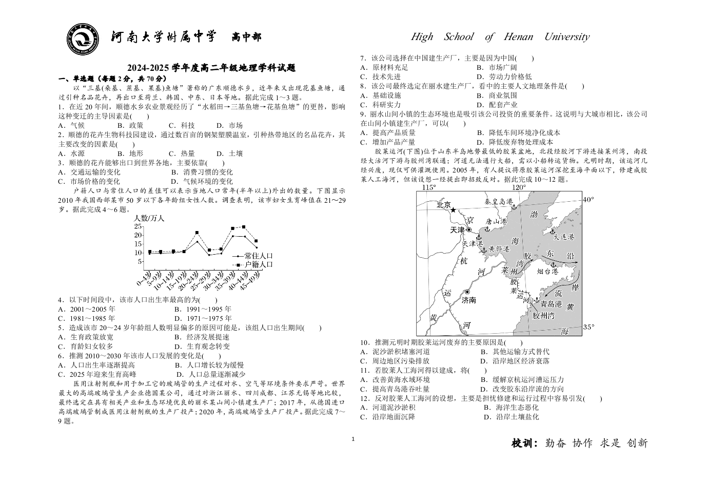 河南省开封市龙亭区2024-2025学年河南大学附属中学高二年级10月月考地理