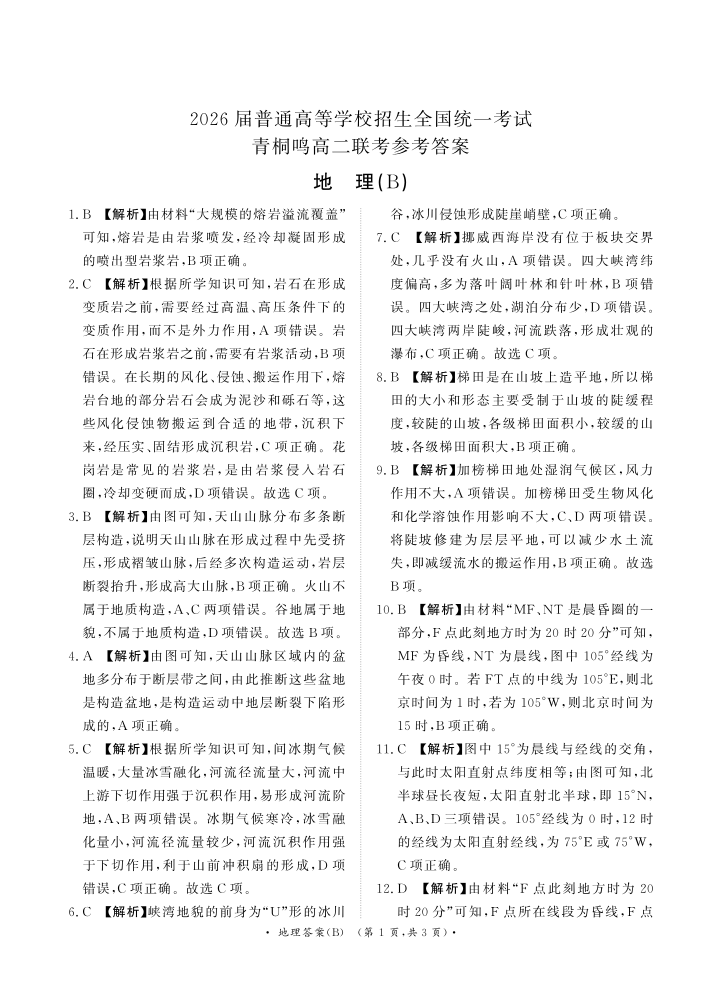 河南省青桐鸣大联考2026届普通高等学校招生全国统一考试高二联考地理答案