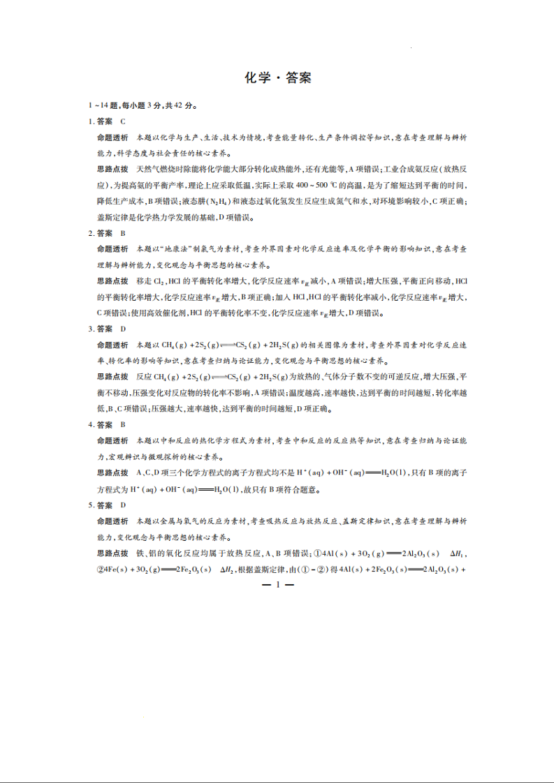 河南省周口市部分校2024—2025学年高二年级阶段性测试(一)化学答案