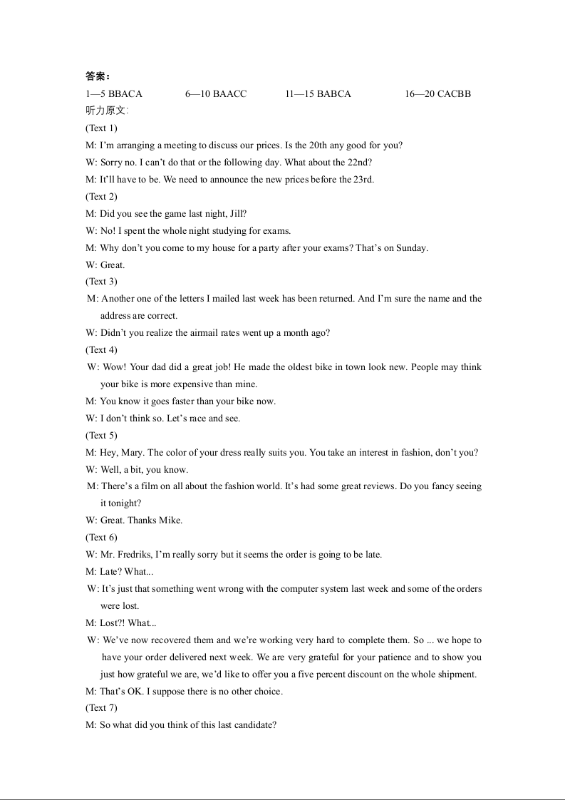 黑龙江省哈尔滨市哈师大附中2023级高二上学期十月月考英语答案