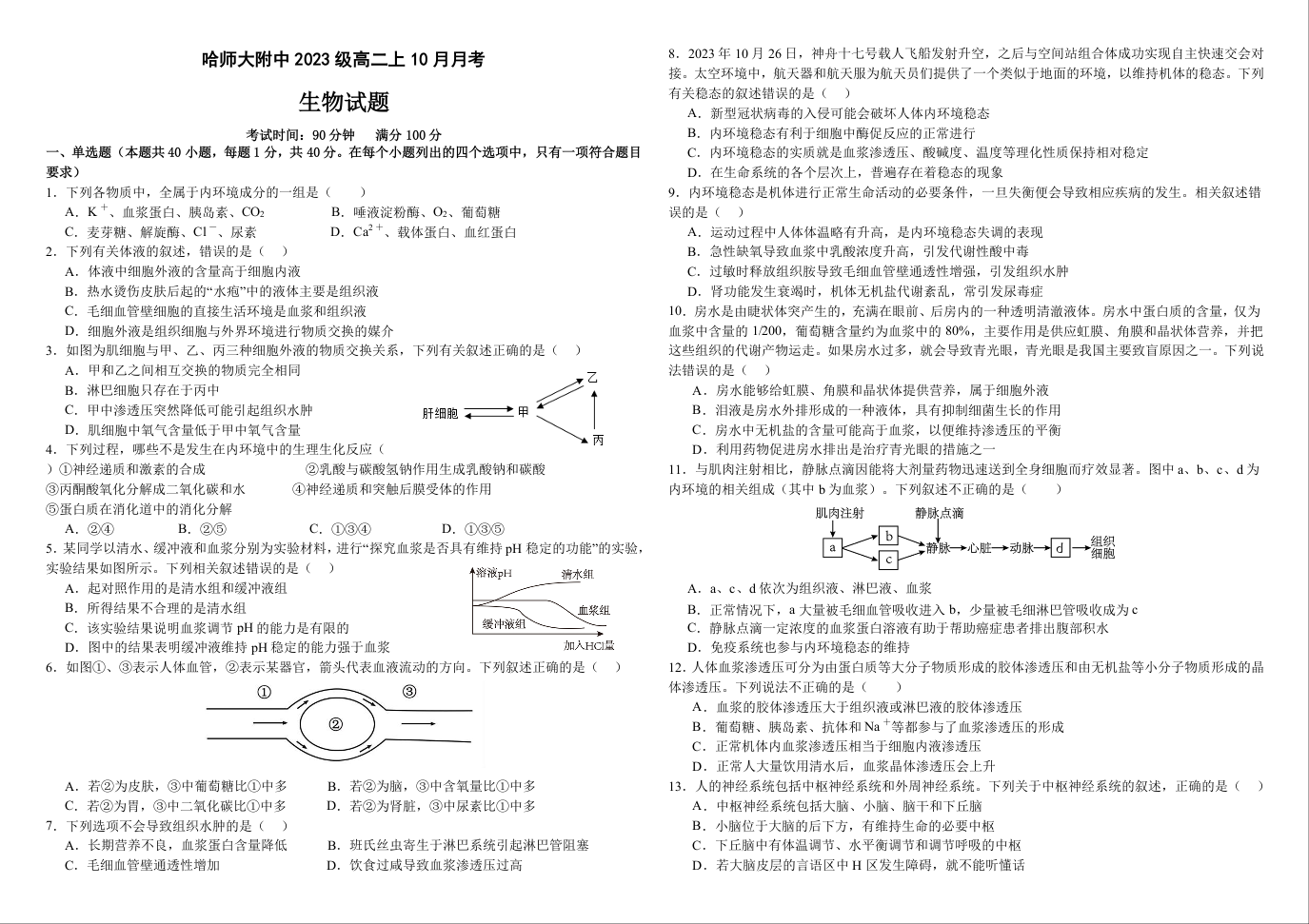 黑龙江省哈尔滨市哈师大附中2023级高二上学期十月月考生物