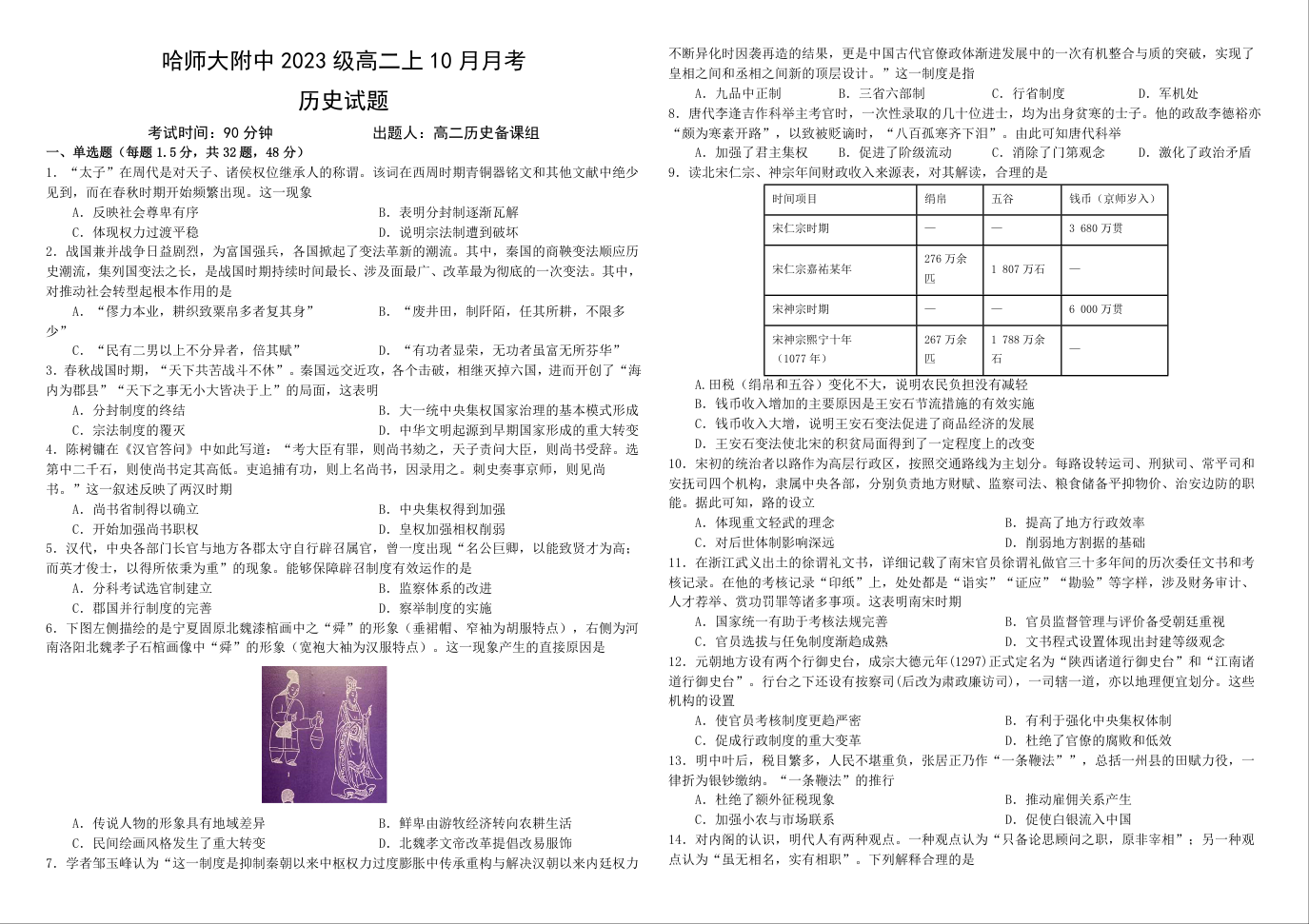 黑龙江省哈尔滨市哈师大附中2023级高二上学期十月月考历史