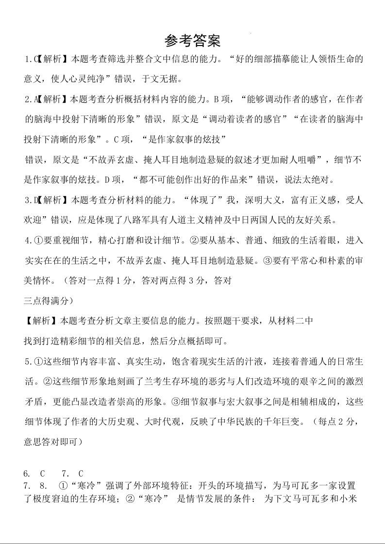 黑龙江省富锦市部分学校2024—2025学年度高二学年上学期期中考试语文答案