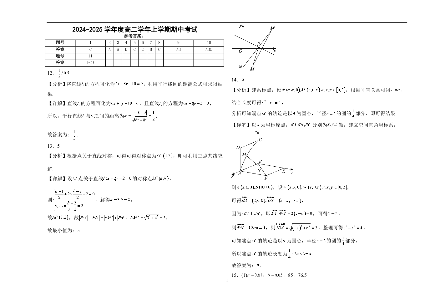 黑龙江省富锦市部分学校2024—2025学年度高二学年上学期期中考试数学答案