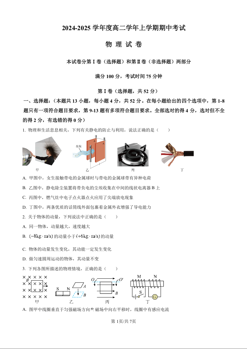 黑龙江省富锦市部分学校2024—2025学年度高二学年上学期期中考试物理(原卷版)