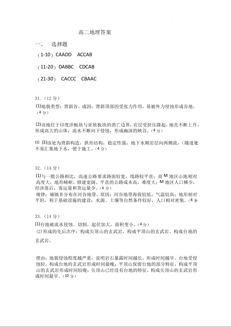 黑龙江省富锦市部分学校2024—2025学年度高二学年上学期期中考试地理答案