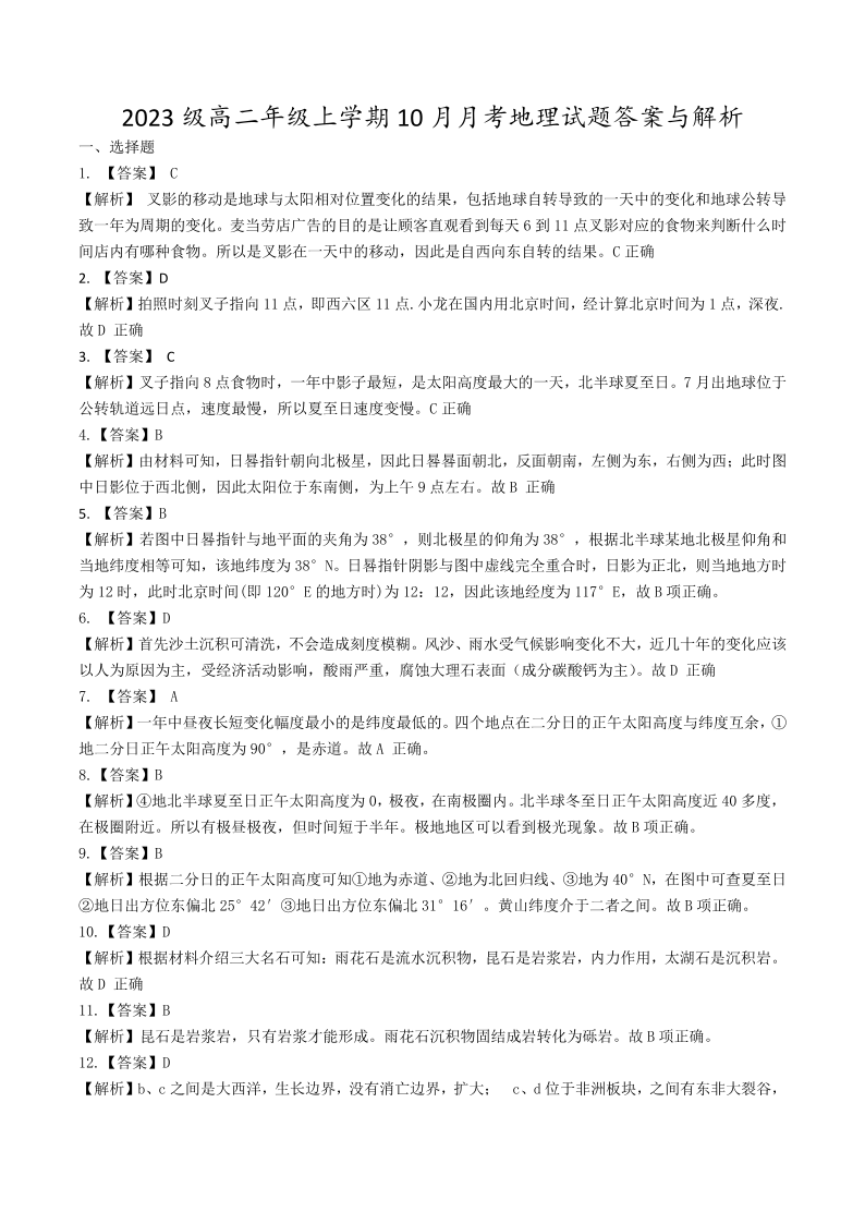 黑龙江省龙东联盟2023 级高二年级上学期 10 月月考地理答案