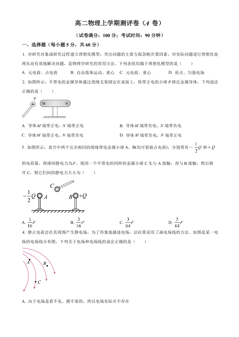 湖南省衡阳市衡阳县部分学校2024-2025学年高二上学期测评物理(A卷)