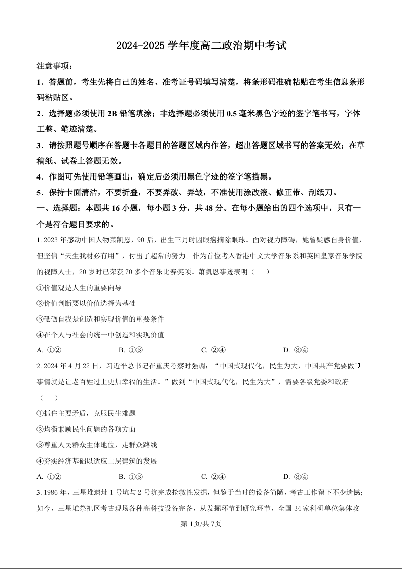 吉林省2024-2025学年度友好学校高二年级期中考卷政治(原卷版)