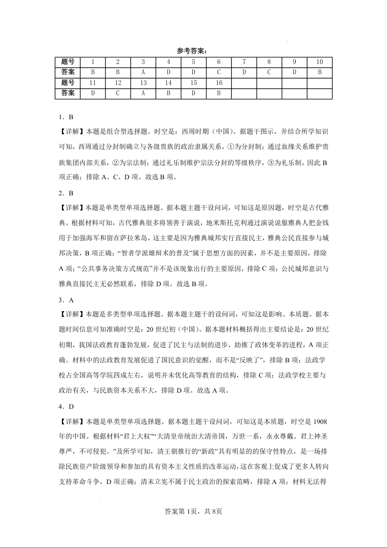吉林省2024-2025学年度友好学校高二年级期中考卷历史答案