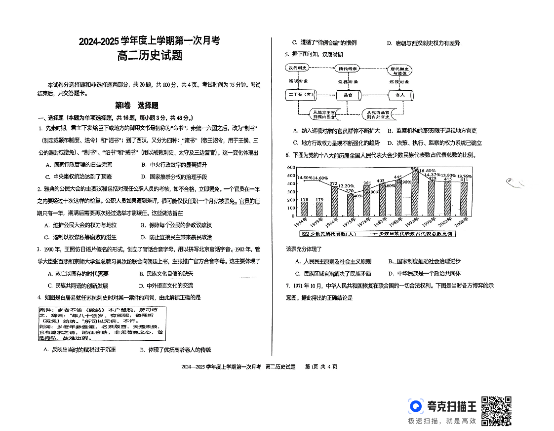 吉林省部分学校2024-2025学年度上学期第一次月考历史