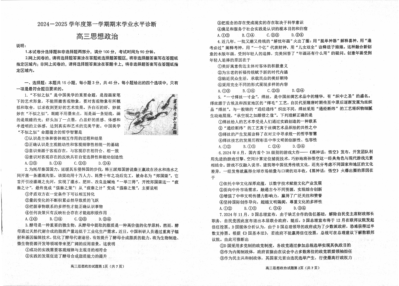 山东省威海市2024-2025学年第一学期1月高三期末学业水平诊断政治