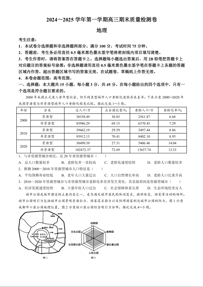 山西省卓越联盟2024-2025学年上学期1月高三期末质量检测地理+答案