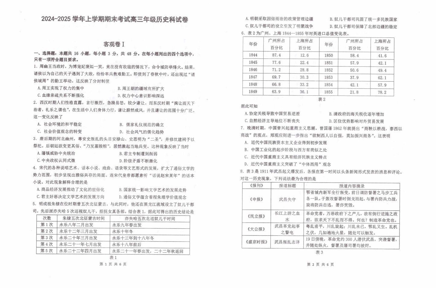 辽宁省五强高中2024-2025学年上学期1月高三期末考试历史+答案