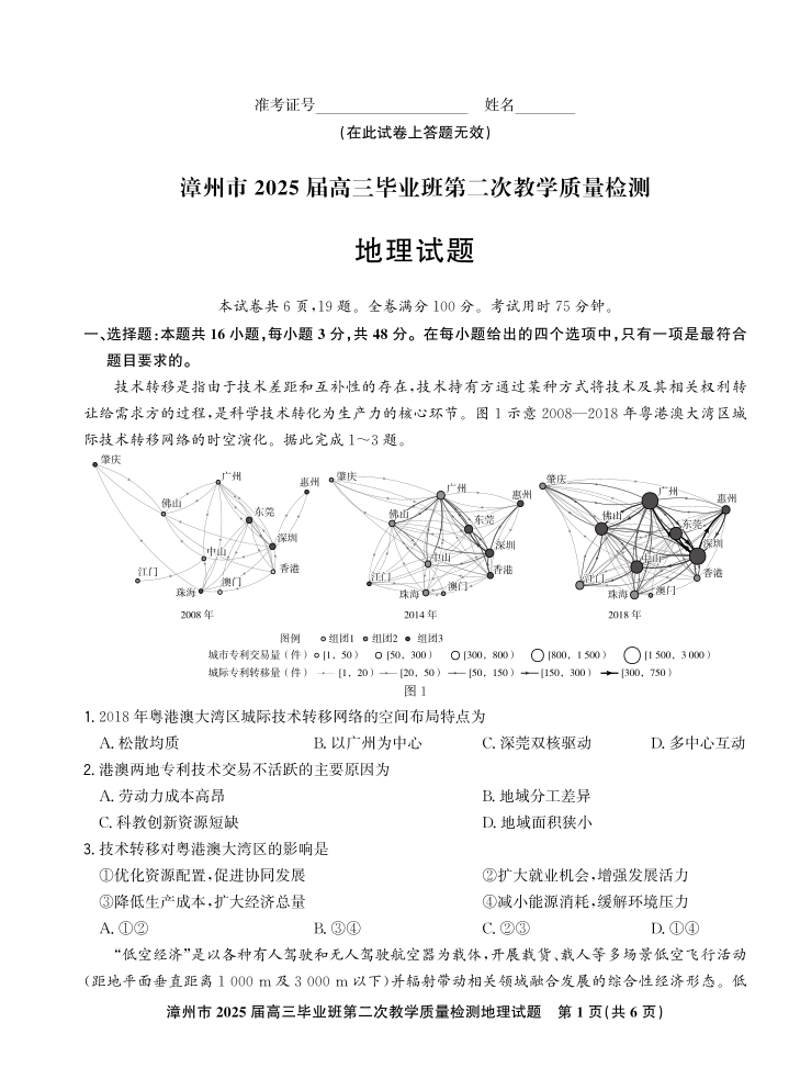 福建省漳州市2024-2025学年上学期1月高三期末考试地理+答案
