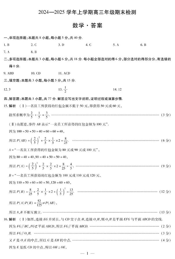 安徽省区域高中2024-2025学年上学期1月高三期末检测数学答案