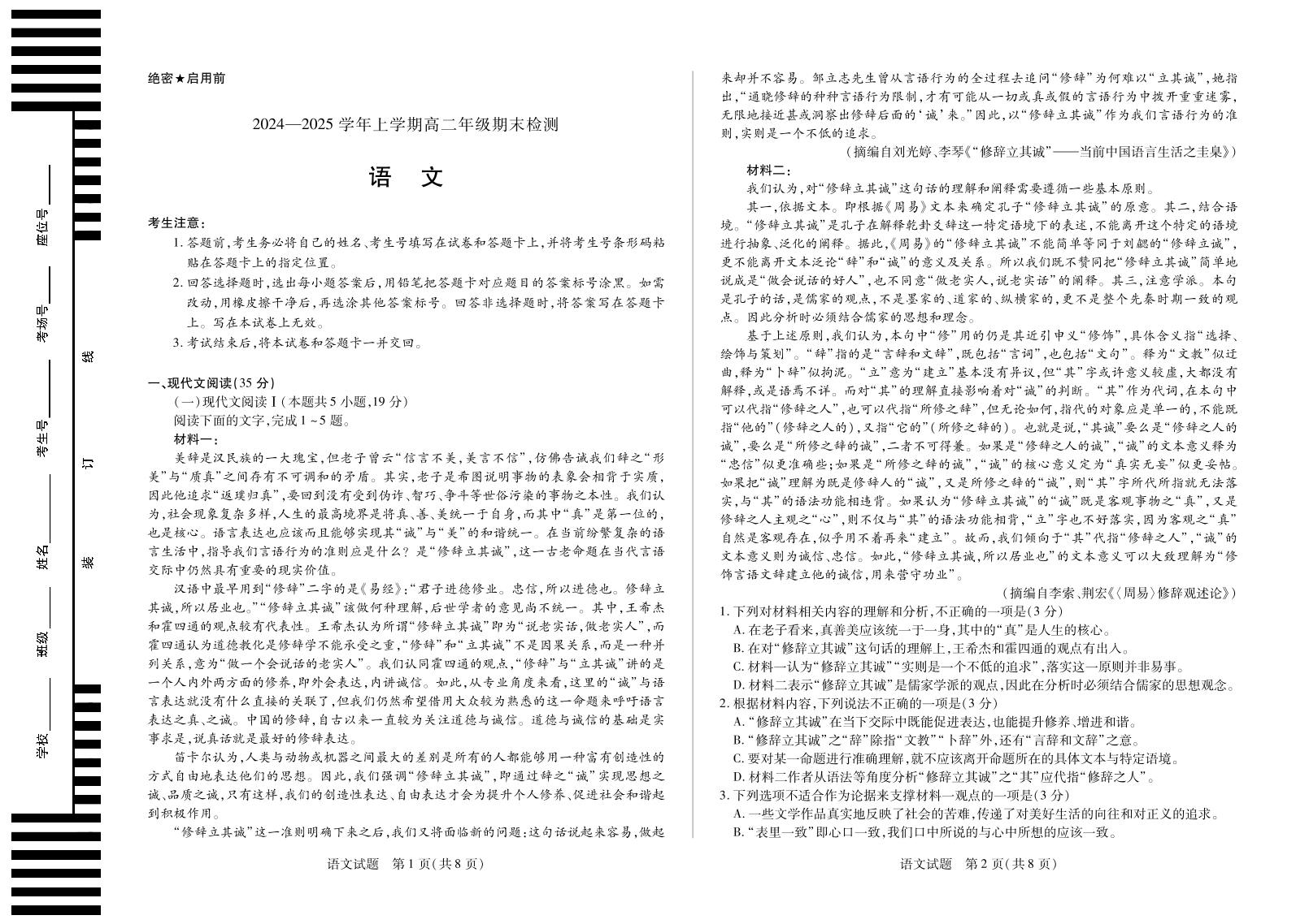 安徽区域高中2024-2025学年高二上学期期末检测语文