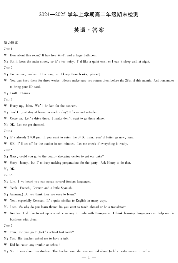 安徽区域高中2024-2025学年高二上学期期末检测英语答案