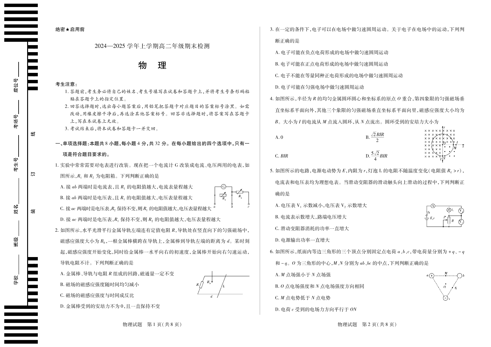 安徽区域高中2024-2025学年高二上学期期末检测物理