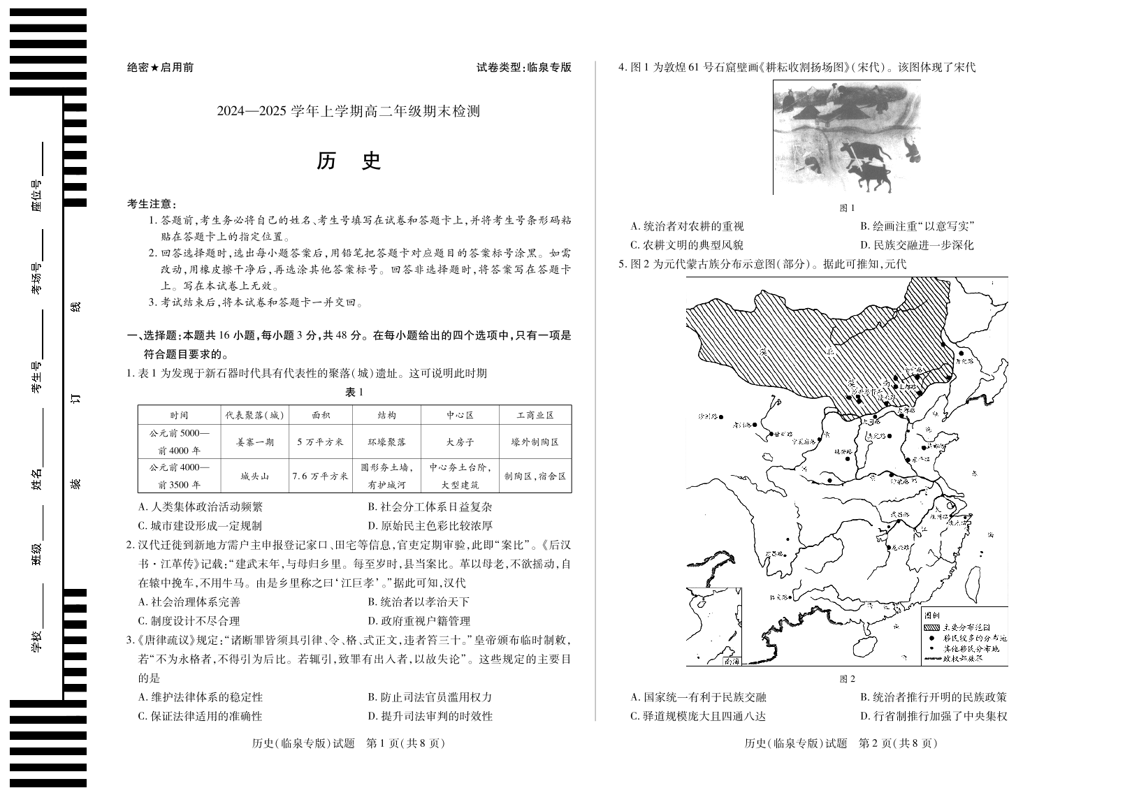安徽区域高中2024-2025学年高二上学期期末检测(临泉专版)历史