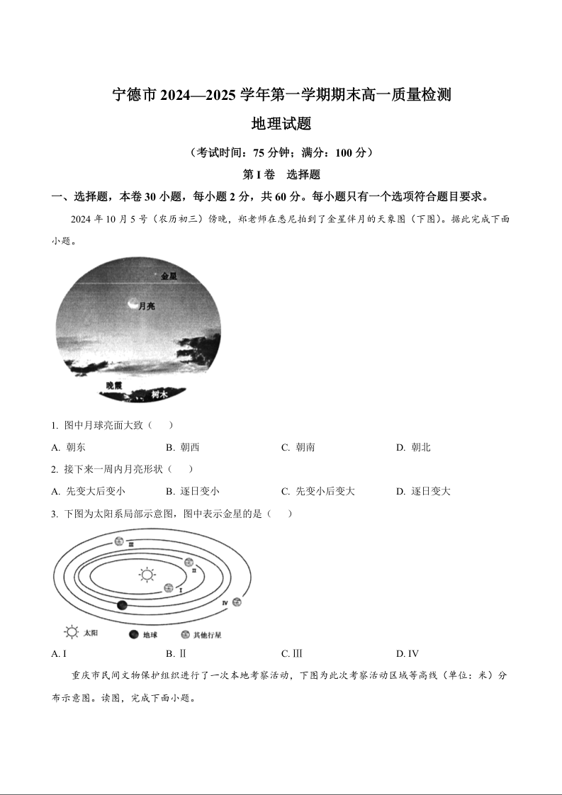 福建省宁德市2024-2025学年上学期1月高一期末考试地理+答案