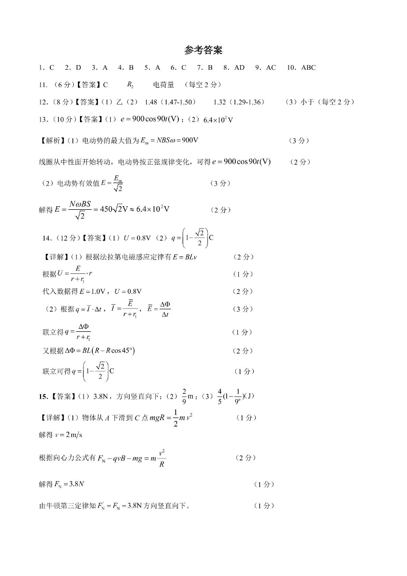 吉林省八校联考2024-2025学年上学期1月高二期末考试物理答案