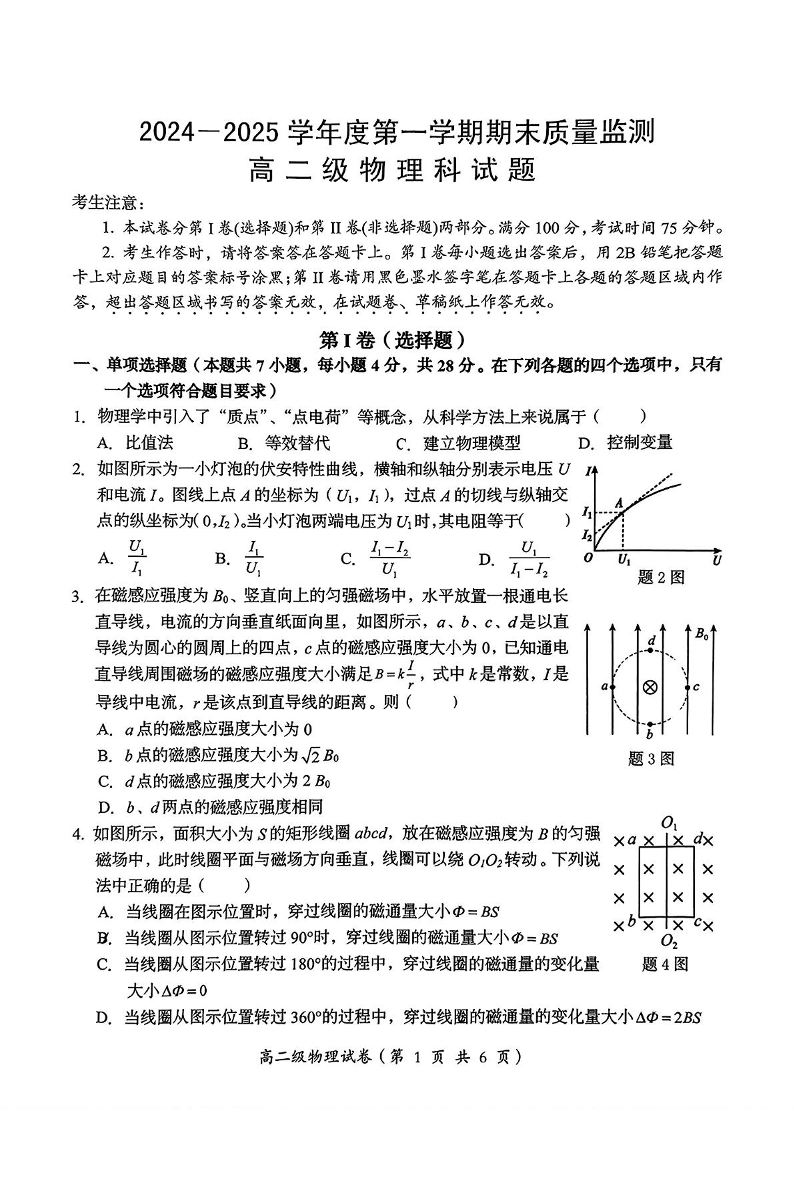 广东省汕头市澄海区2024-2025学年上学期1月高二期末考试物理