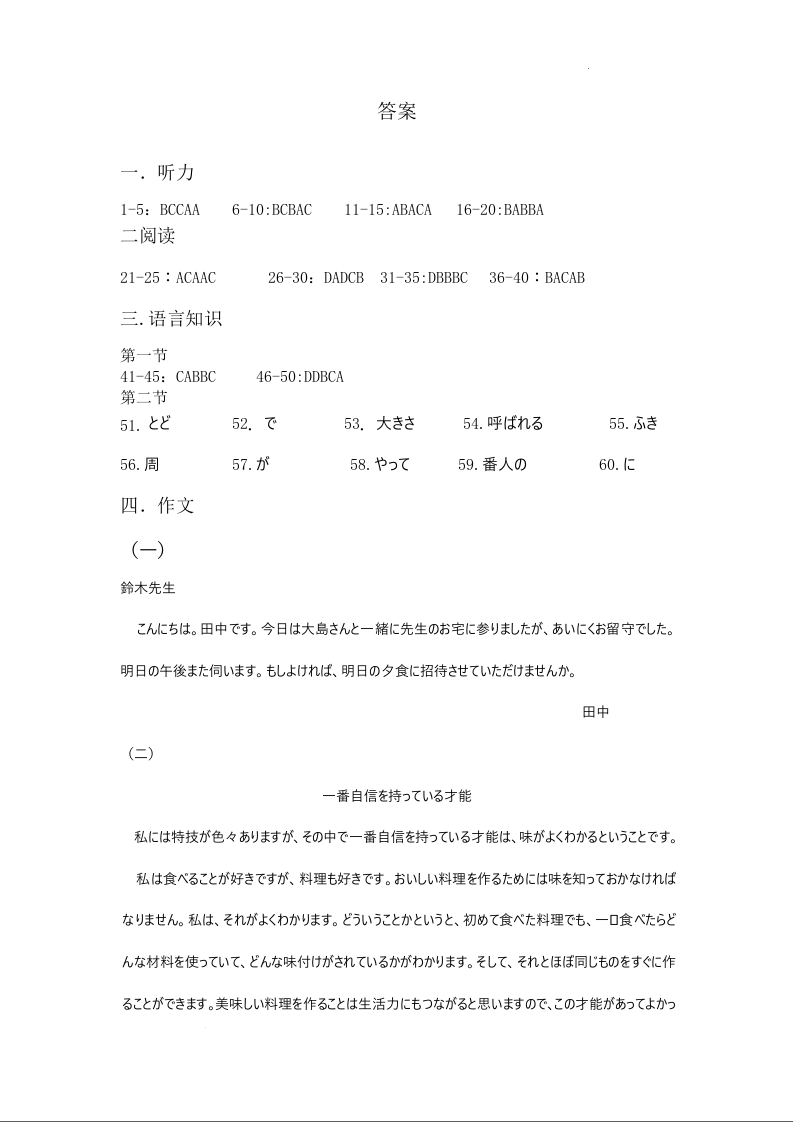 山西省卓越联盟2024-2025学年上学期1月高三期末质量检测日语答案