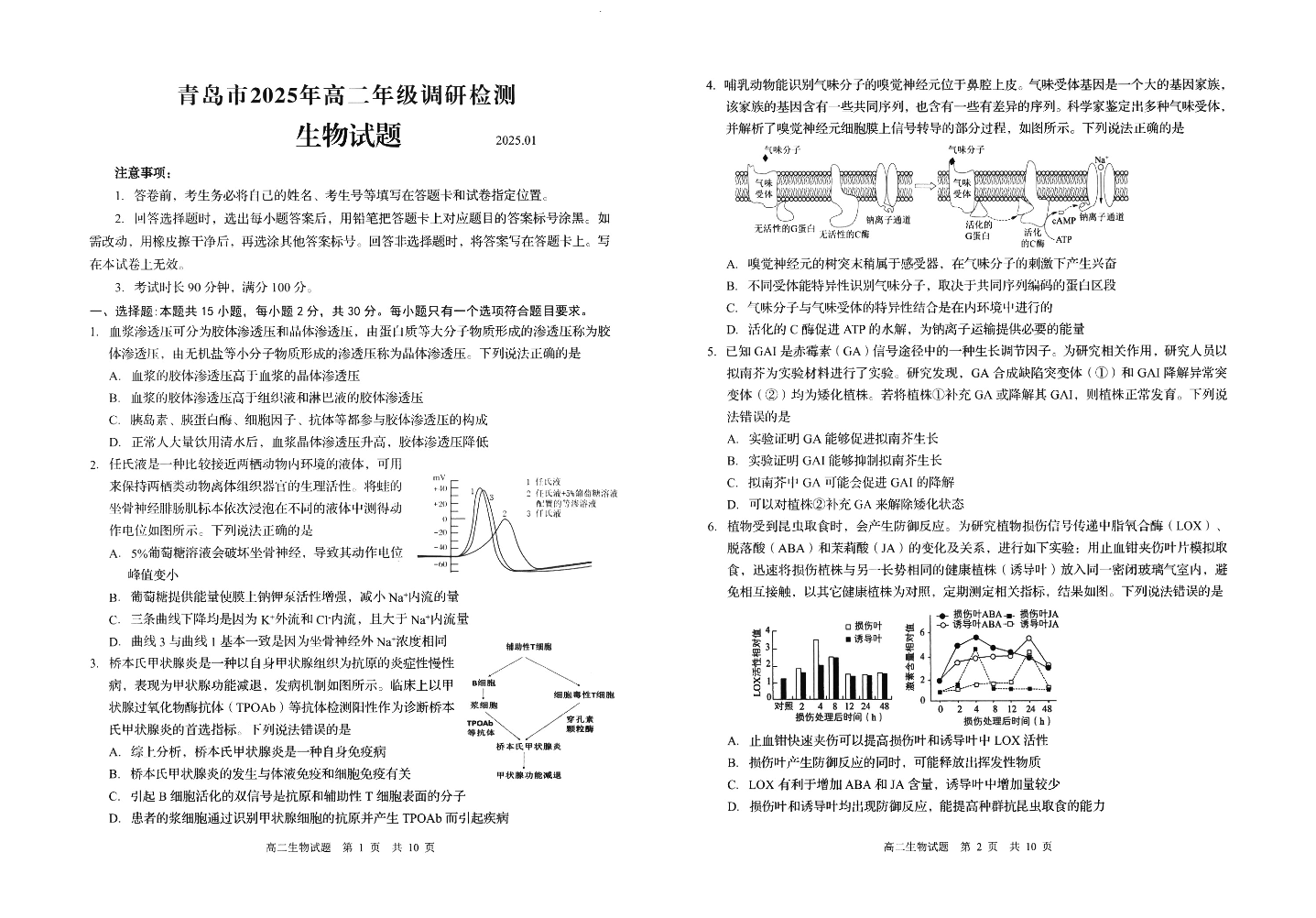 山东省青岛市2024-2025学年上学期1月高二期末统一调研检测生物