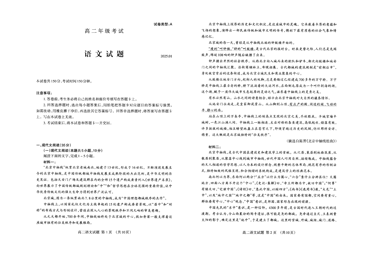山东省泰安市2024-2025学年上学期1月高二期末统一考试语文