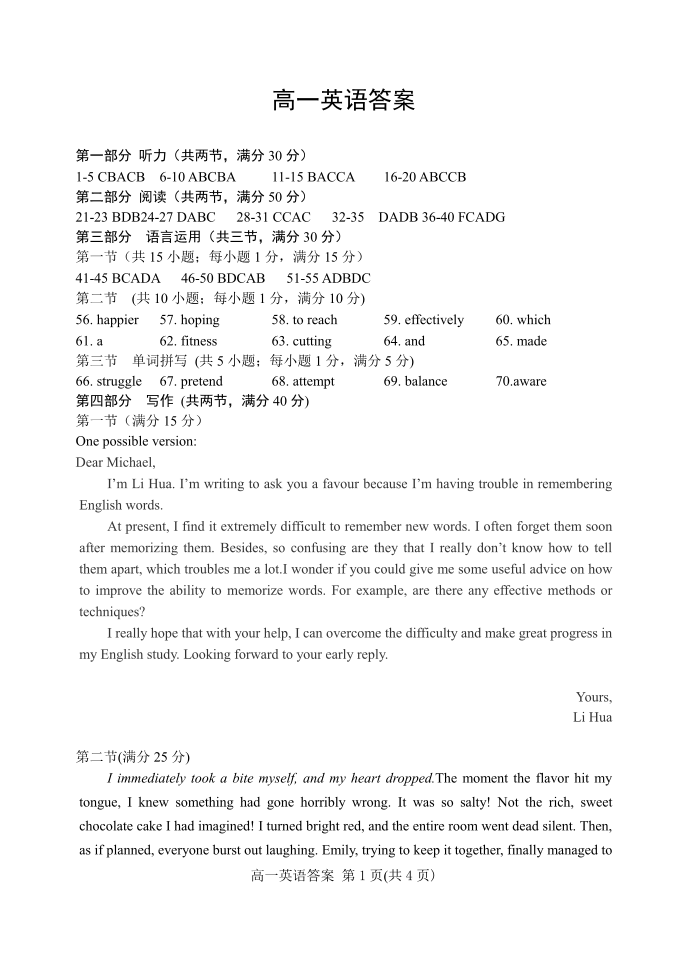 山东省潍坊市区域2024-2025学年上学期1月高一期末质量监测英语答案