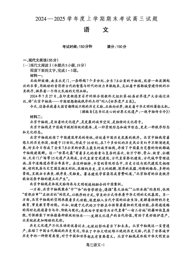 辽宁省省重点中学协作校2024-2025学年上学期高三期末考试语文