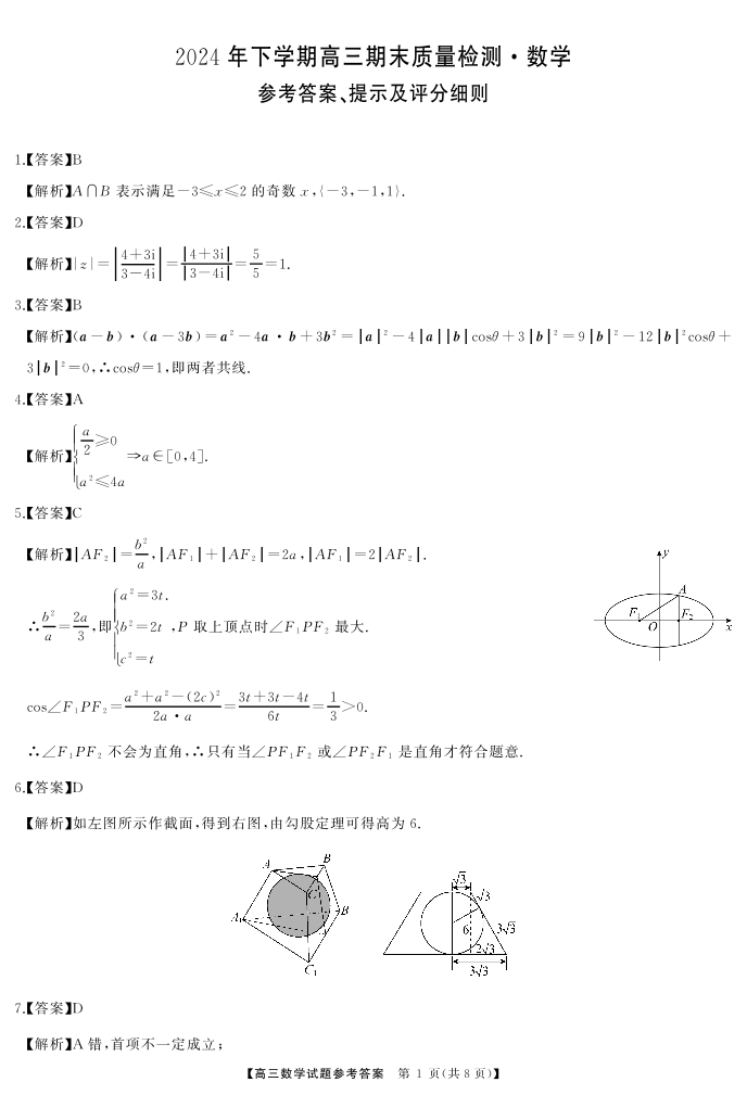 湖南五市2025届上学期1月高三期末质量检测数学答案