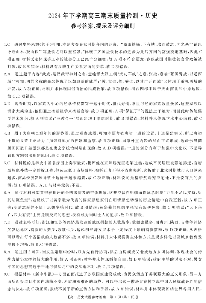 湖南五市2025届上学期1月高三期末质量检测历史答案