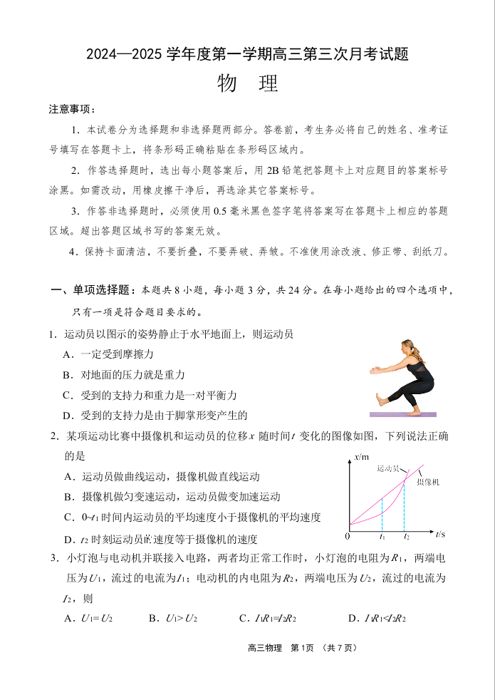 海南省文昌中学2025届高三上学期1月第三次月考物理