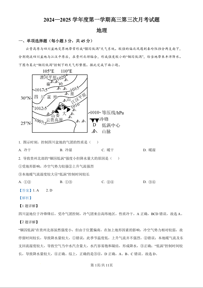 海南省文昌中学2025届高三上学期1月第三次月考地理(精品解析版)