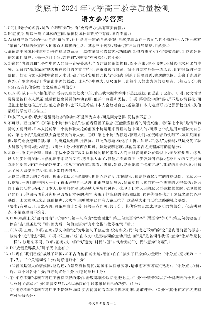 湖南省娄底市2025届上学期1月高三期末质量检测语文答案